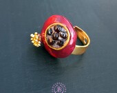polymer clay, adjustable ring base, garnet beads, quality findings