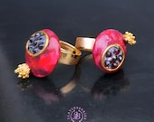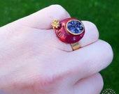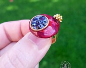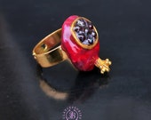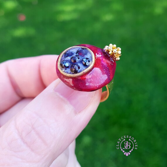 Pomegranate Garnet adjustable ring, Fruit Nature statement ring, Pomegranate jewelley