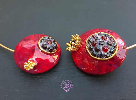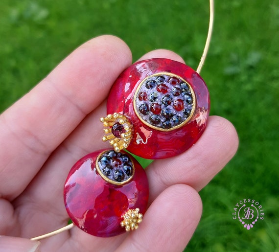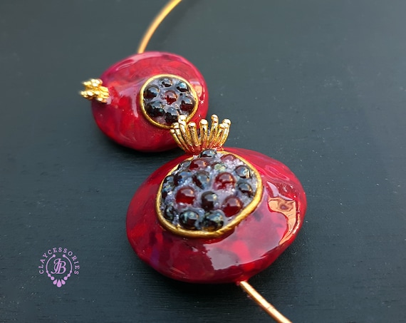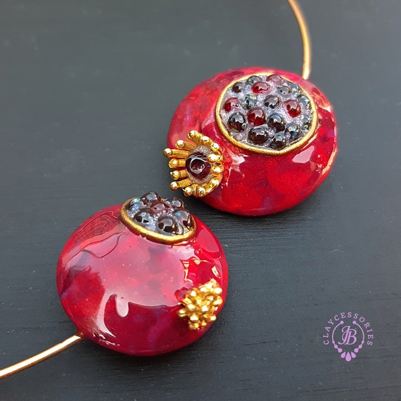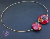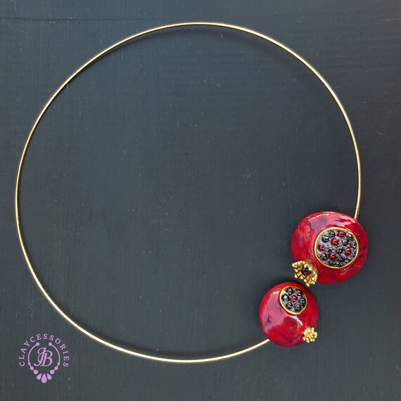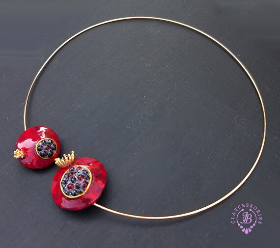 Garnet Pomegranate open choker necklace, bright, very light and shimmer in the sun, is the best gift for the Rosh Hashanah celebration. All details are sculpted and cut out of high-quality coloured polymer clay on a metal frame, the colours do not fade or fade in the sun, decorated by Garnet beads. Don't forget to indicate the length of the cord you need! Single copy,100% Handmade OOAKpendant. matching pendant: garnet pomegranate pendant pomegranate. matching bracelet: