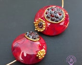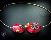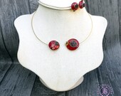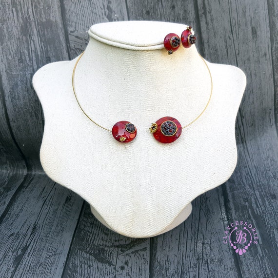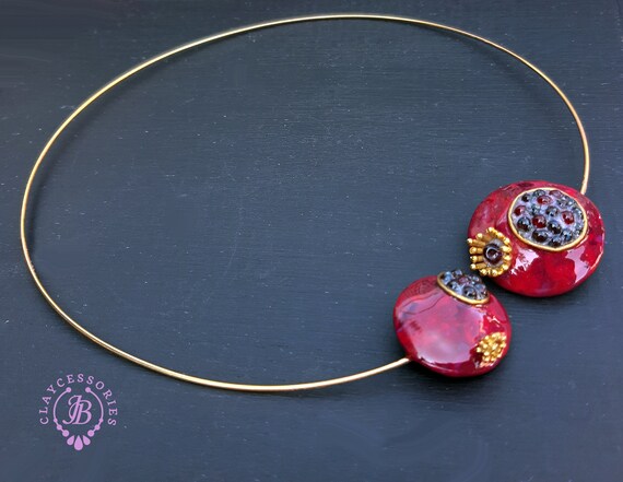 polymer clay, metal choker base, garnet beads, quality findings