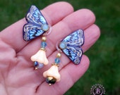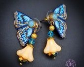 Blue butterfly earrings in Art Nouveau style