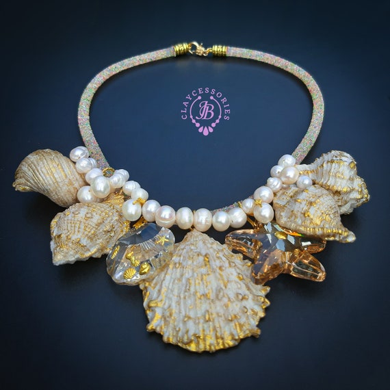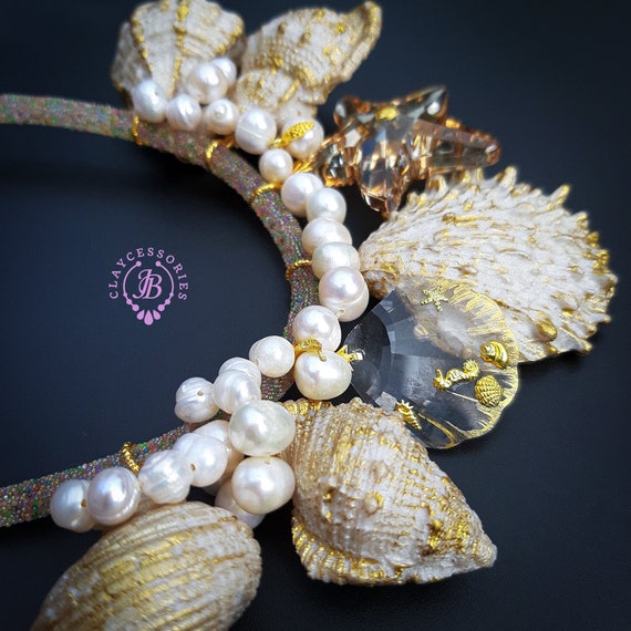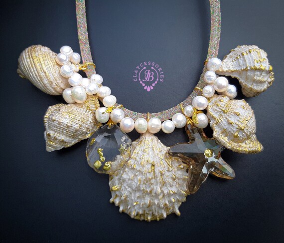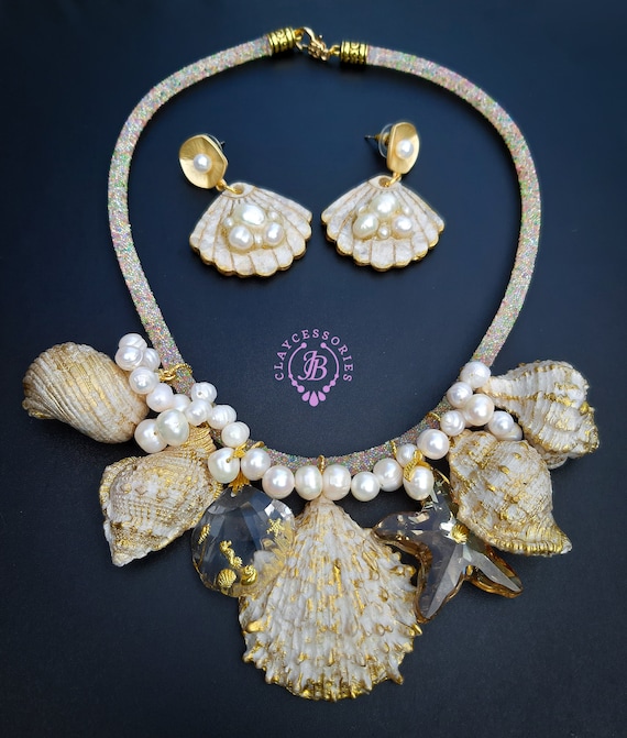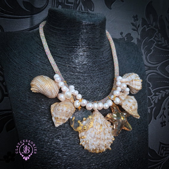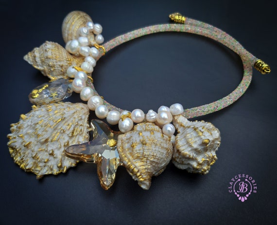 Mother-of-pearl shell necklace with natural freshwater pearls, made of high quality coloured polymer clay, colours do not fade or fade in the sun. These necklace will make you feel like you are on a beach holiday, matching earrings available: mother of pearl seashell earrings. Single copy,100% Handmade OOAK necklace. All items are shipped from my home within 1-3 business days after payment confirmation. Please, contact me with any questions. I make some custom orders. If you would like some items to be custom made or created for you in a special way, feel free to send an Etsy conversation with your requirements, and we can discuss them.