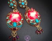 Pomegranate statement earrings in Art Nouveau style
