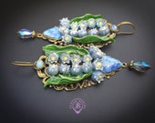 Blue lilies of the valley earrings in Art Nouveau style