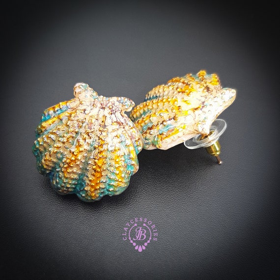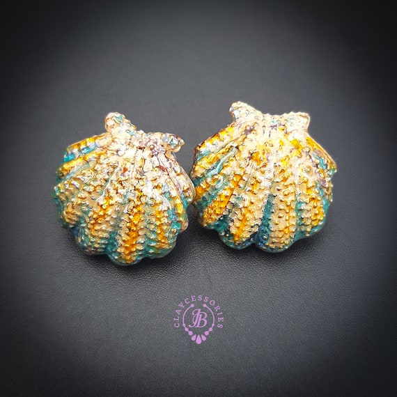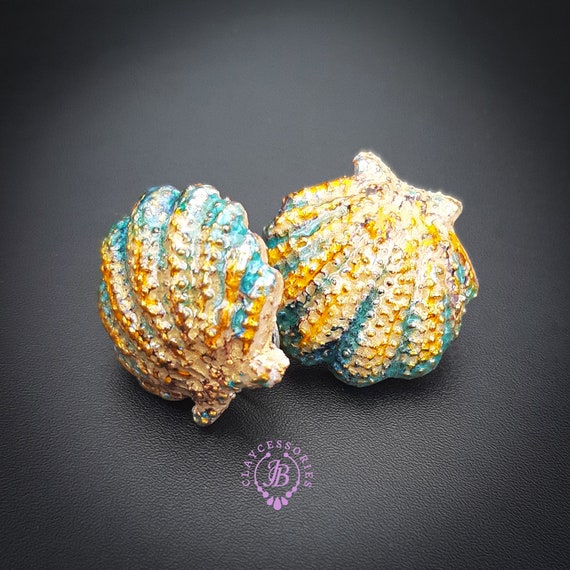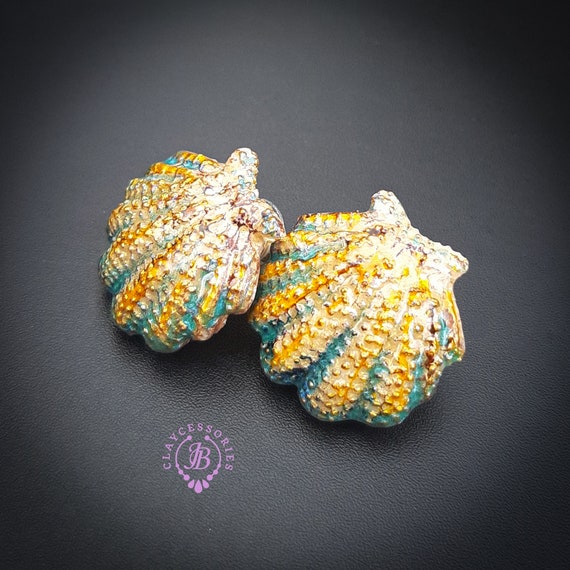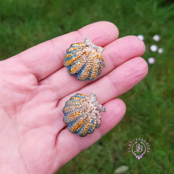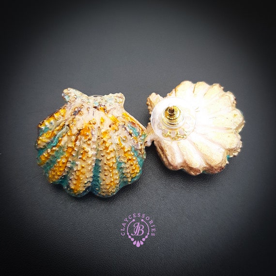 Shell stud summer earrings, all details sculpted and carved from high-quality colourful polymer clay, colours do not wash out and do not fade in the sun, coated by UV resin. Single copy,100% Handmade OOAK earrings. All items are shipped from my home within 1-3 business days after payment confirmation. Please, contact me for any questions. I make some custom orders. If you would like some items to be custom made or created for you in a special way, feel free to send an Etsy conversation with your requirements, and we can discuss them.