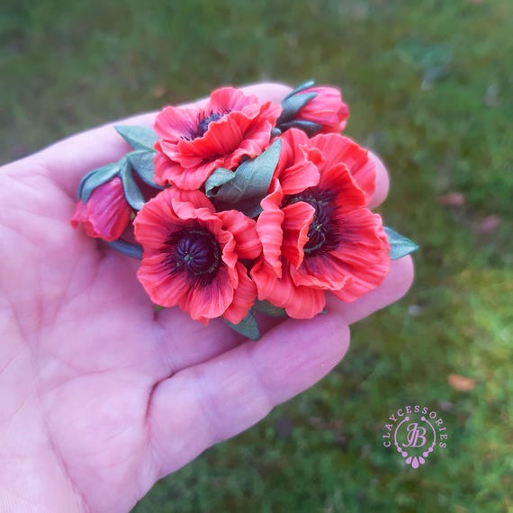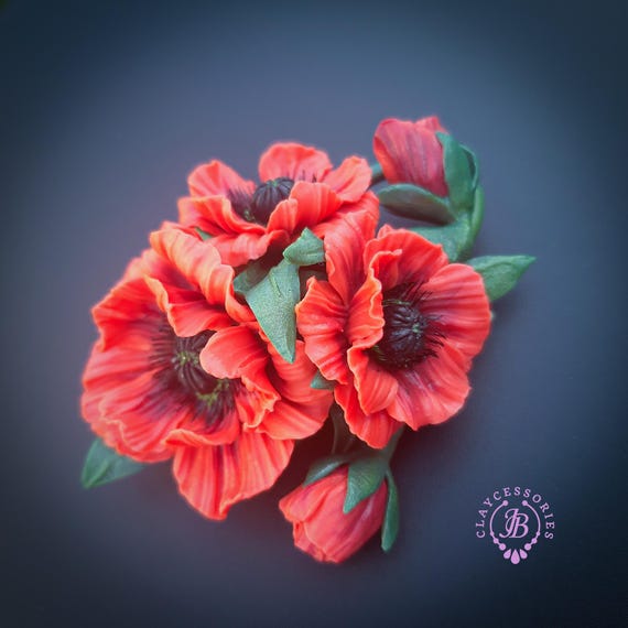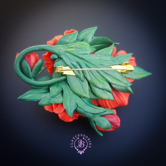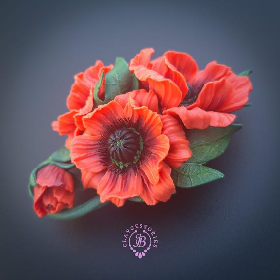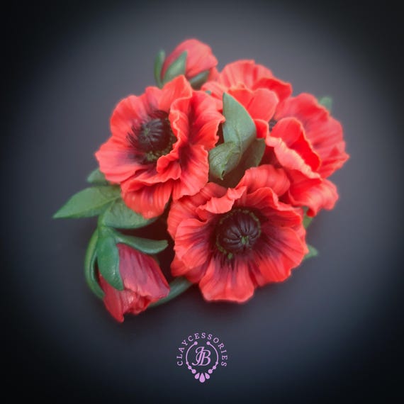 Poppies flowers statement brooch, made of high-quality colourful polymer clay, colours do not wash out and do not fade in the sun. Single copy,100% Handmade OOAK brooch. All items are shipped from my home within 1-3 business days after payment confirmation. Please, contact me with any questions. I make some custom orders. If you would like some items to be custom made or created for you in a special way, feel free to send an Etsy conversation with your requirements, and we can discuss them.