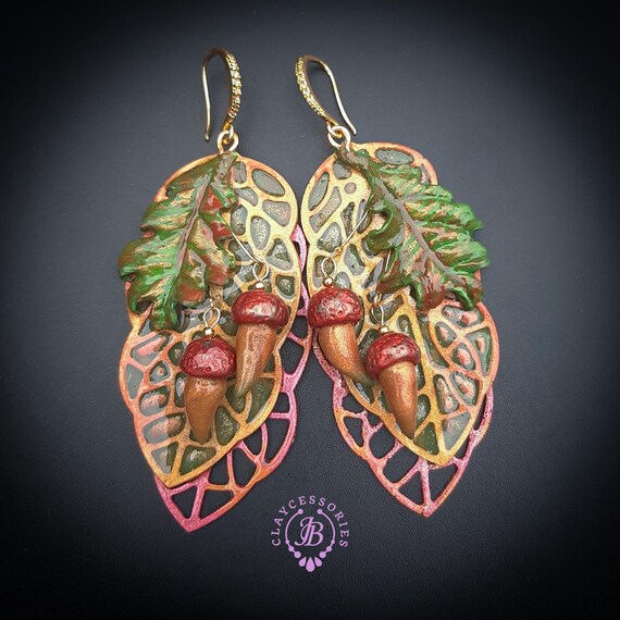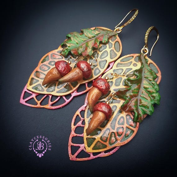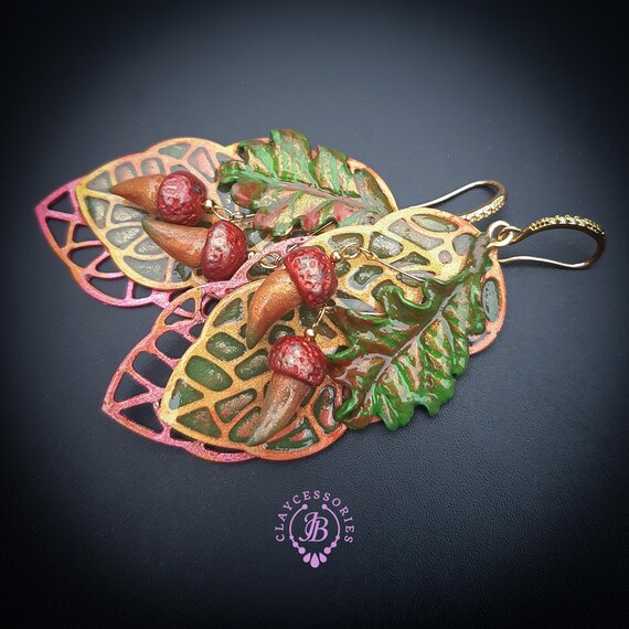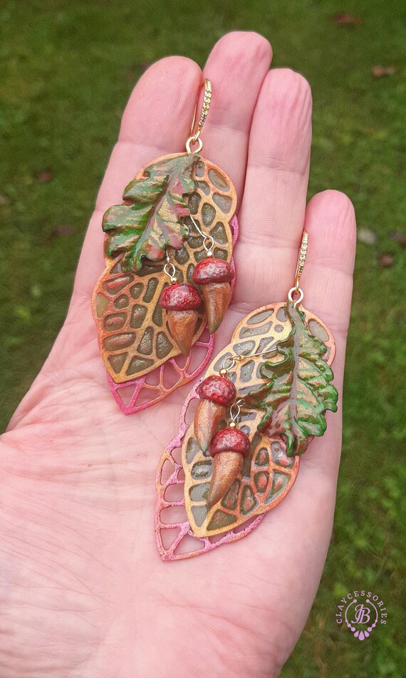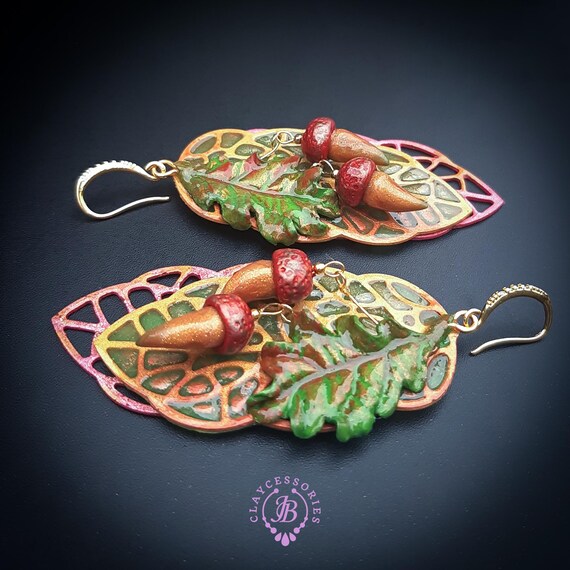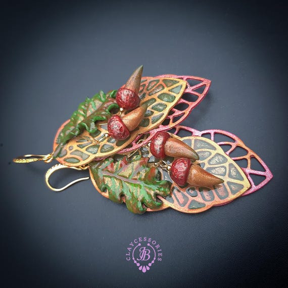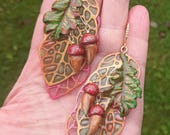 Autumn acorn oak leaves earrings are the perfect way to welcome autumn! Earrings made by hand from high-quality polymer clay, colours do not wash out and don't fade in the sun. Single copy, 100% Handmade OOAK earrings. All items are shipped from my home within 1-3 business days after payment confirmation. Please, contact me with any questions. I make some custom orders. If you would like some items to be custom made or created for you in a special way, feel free to send an Etsy conversation with your requirements, and we can discuss them.
