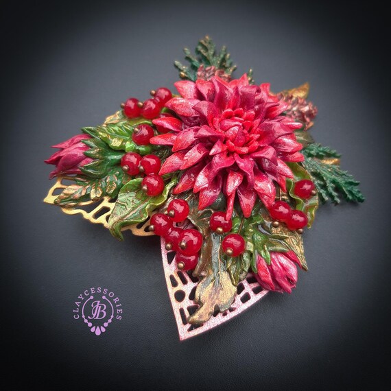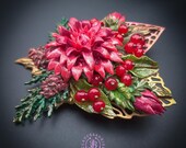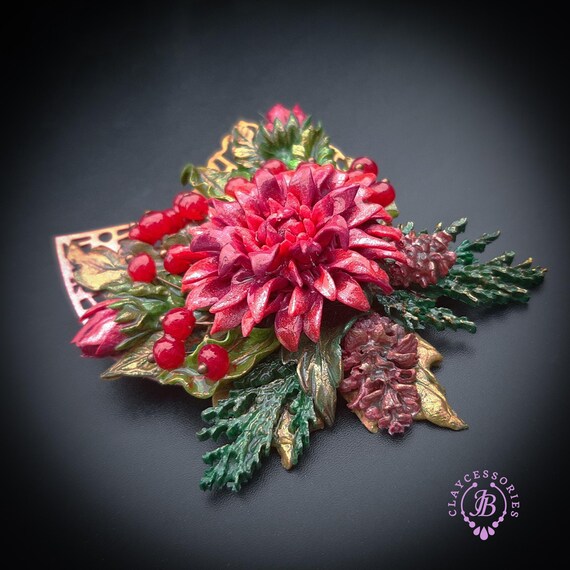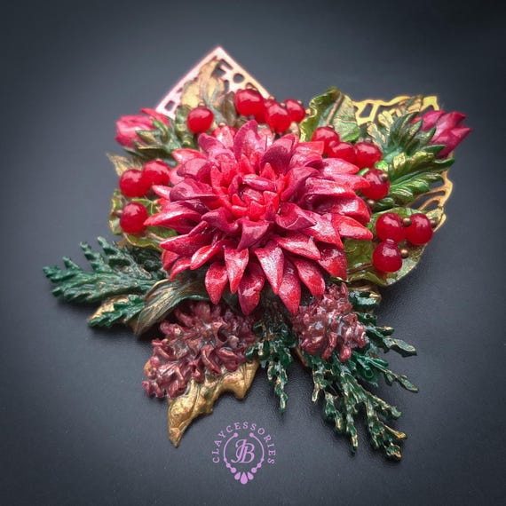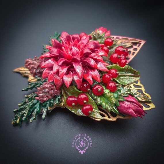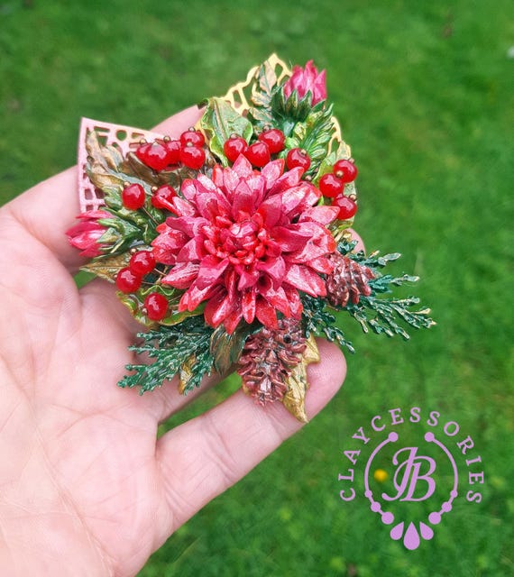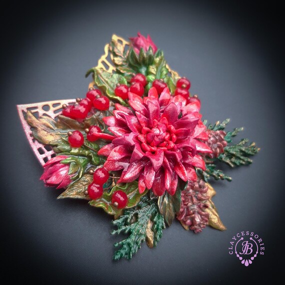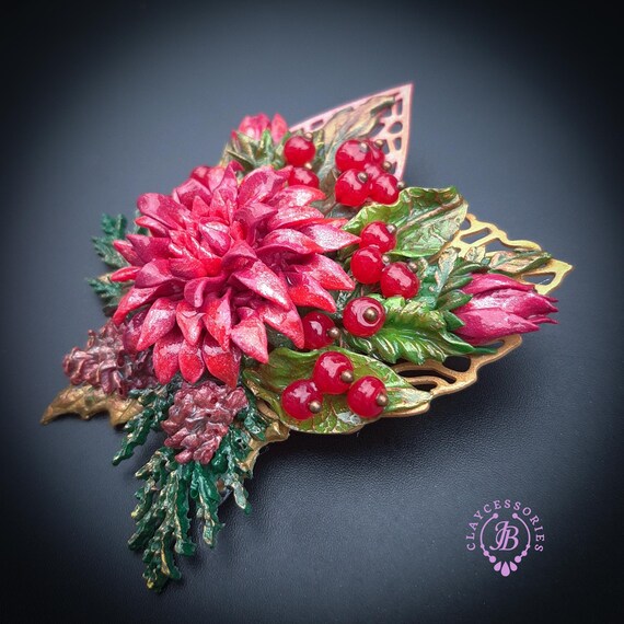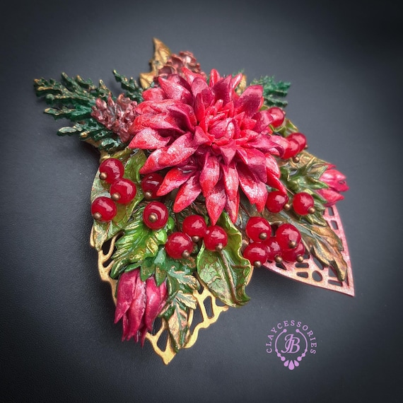 Autumn statement brooch with fall leaves and flowers, the perfect way to welcome autumn! They are a great Thanksgiving accessory, but can also be worn all autumn season. All details are sculpted and carved from high-quality colourful polymer clay, colours do not wash out and do not fade in the sun. Single copy,100% Handmade OOAK brooch. All items are shipped from my home within 1-3 business days after payment confirmation. Please, contact me with any questions. I make some custom orders. If you would like some items to be custom made or created for you in a special way, feel free to send an Etsy conversation with your requirements, and we can discuss them.