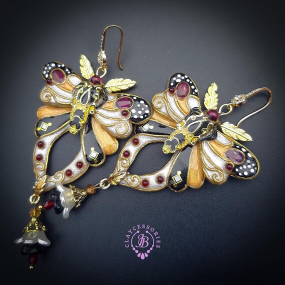 Butterfly statement earrings in Art Nouveau style
