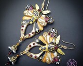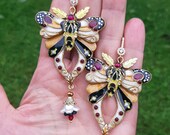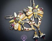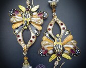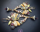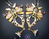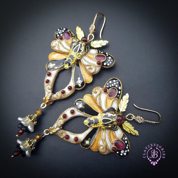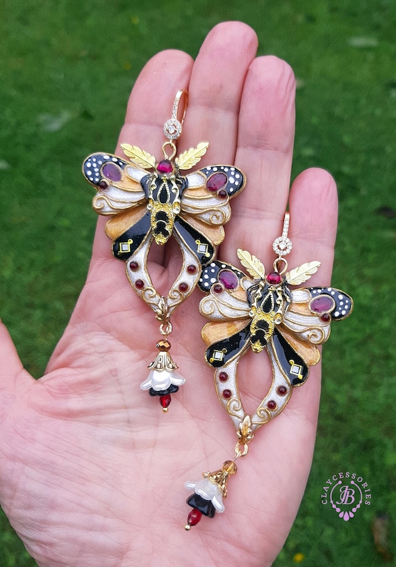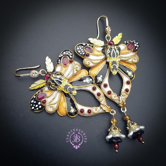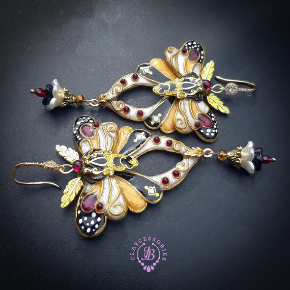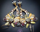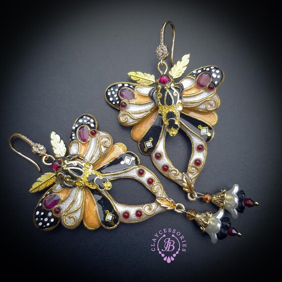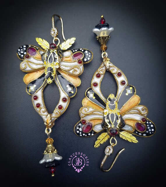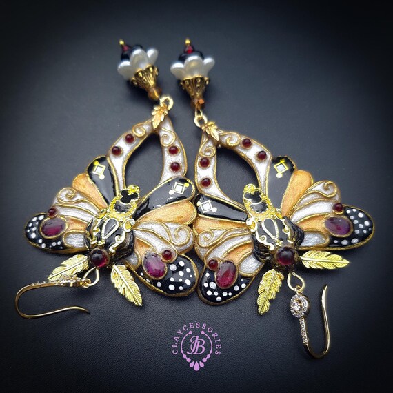 Butterfly statement earrings in Art Nouveau style, made from high-quality colourful polymer clay, colours do not wash out and do not fade in the sun, decorated by natural gems. Single copy,100% Handmade OOAK earrings. All items are shipped from my home within 1-3 business days after payment confirmation. Please, contact me with any questions. I make some custom orders. If you would like some items to be custom made or created for you in a special way, feel free to send an Etsy conversation with your requirements, and we can discuss them.