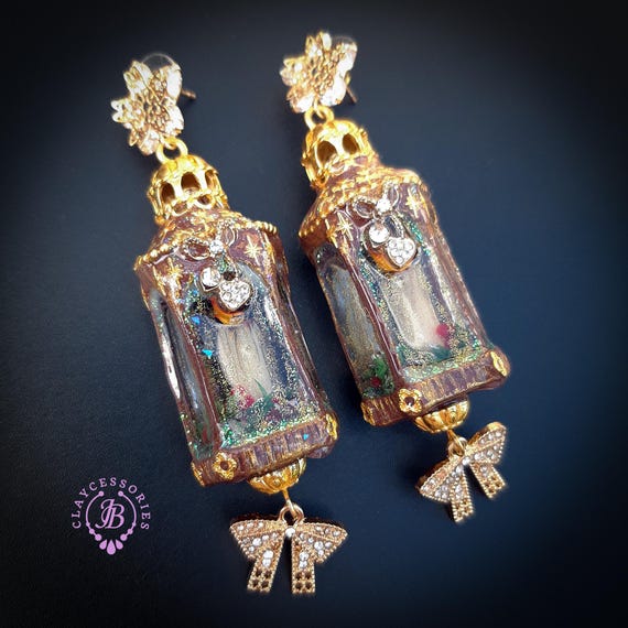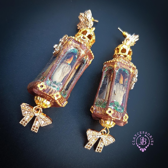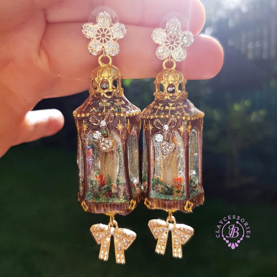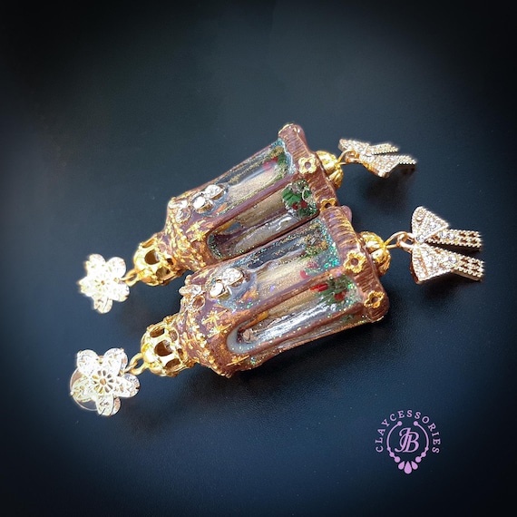 Christmas lanterns statement earrings, made using mixed media, polymer clay and UV resin, unique design and best choice for Christmas gift! All details are sculpted and carved from high-quality colourful polymer clay, colours do not wash out and do not fade in the sun. Single copy,100% Handmade OOAK earrings. All items are shipped from my home within 1-3 business days after payment confirmation. Please, contact with me any questions. I make some custom orders. If you would like some items to be custom made or created for you in a special way, feel free to send an Etsy conversation with your requirements, and we can discuss them.