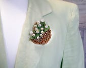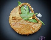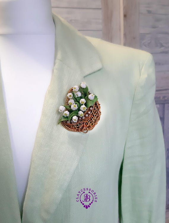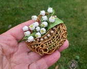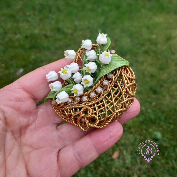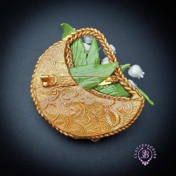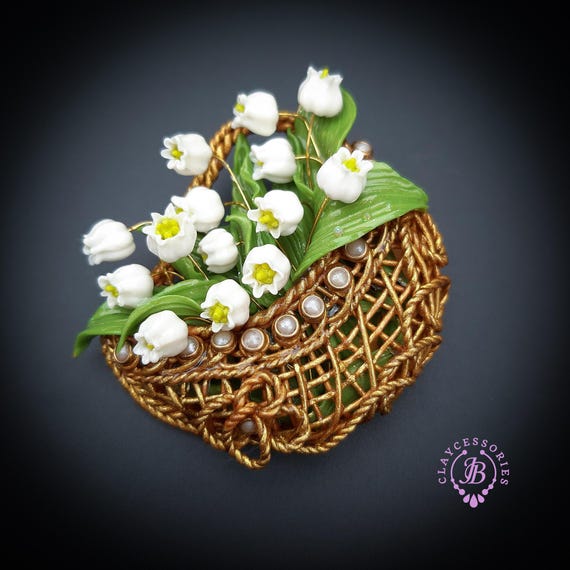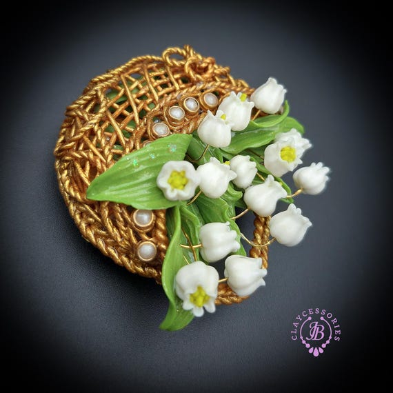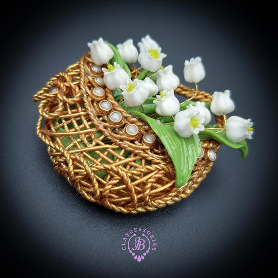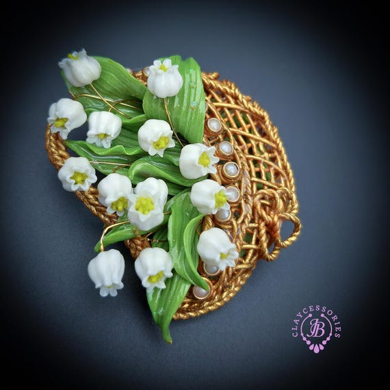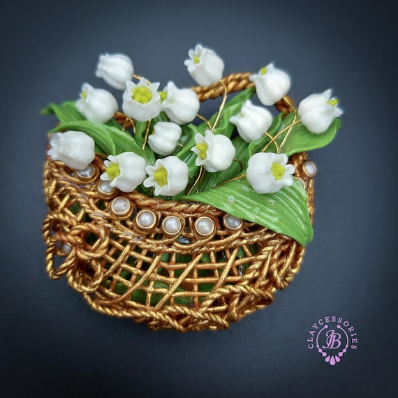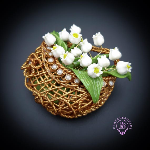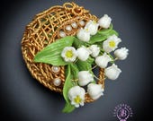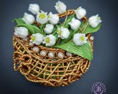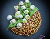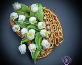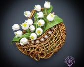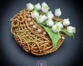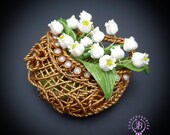 lilies of the valley basket brooch in Art Nouveau style, all details are sculpted and carved from high-quality colourful polymer clay , colours do not wash out and do not fade in the sun. Brooch advisable to attach it to thick fabric. Single copy,100% Handmade OOAK brooch. All items are shipped from my home within 1-3 business days after payment confirmation. Please, contact me with any questions. I make some custom orders. If you would like some items to be custom made or created for you in a special way, feel free to send an Etsy conversation with your requirements, and we can discuss them.