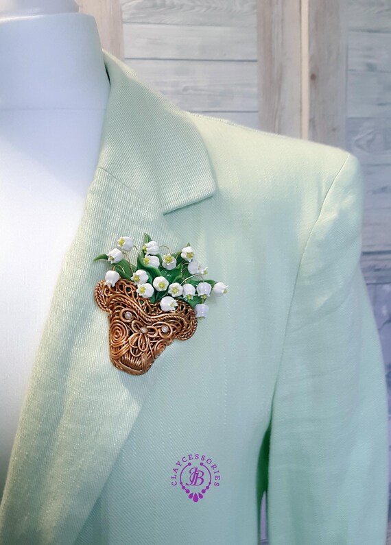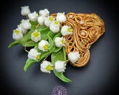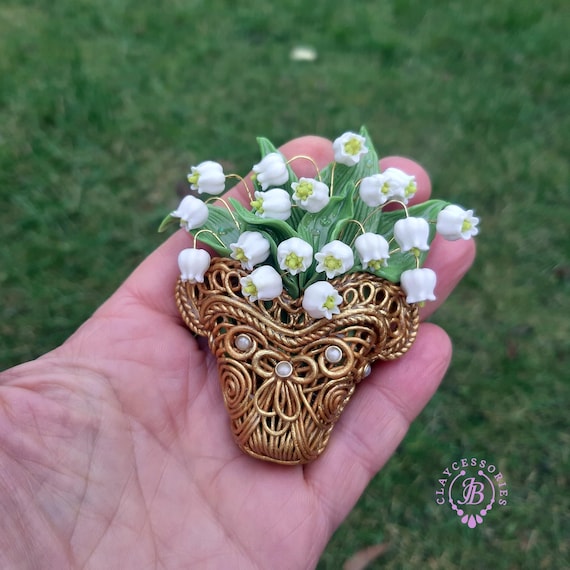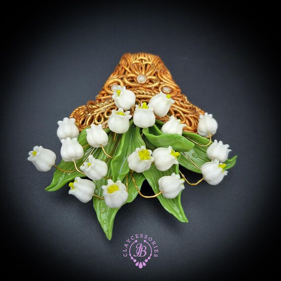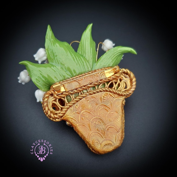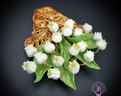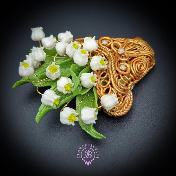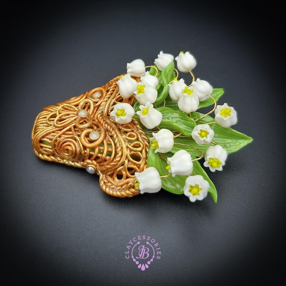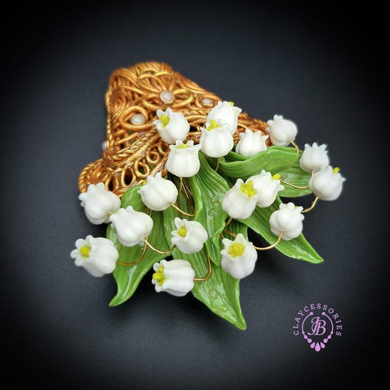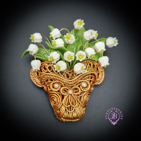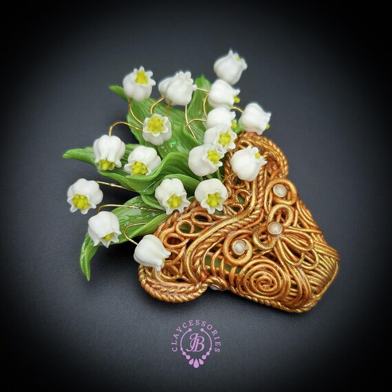 lilies of the valley brooch in Art Nouveau style, all details are sculpted and carved from high-quality colourful polymer clay , colours do not wash out and do not fade in the sun. Brooch advisable to attach it to thick fabric. Single copy,100% Handmade OOAK brooch. All items are shipped from my home within 1-3 business days after payment confirmation. Please, contact me with any questions. I make some custom orders. If you would like some items to be custom made or created for you in a special way, feel free to send an Etsy conversation with your requirements, and we can discuss them.