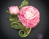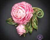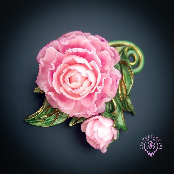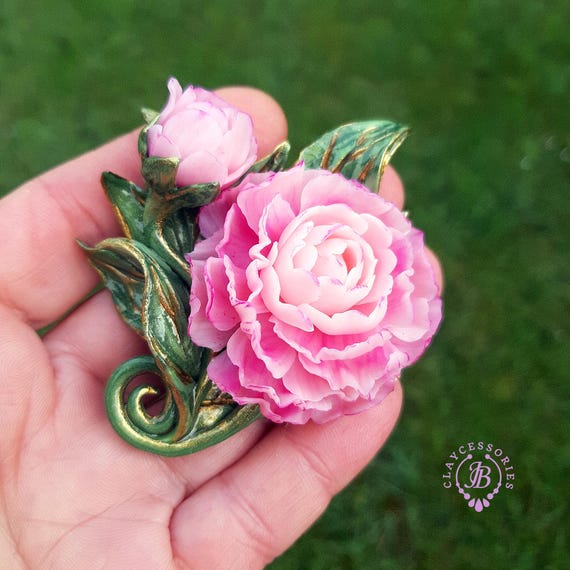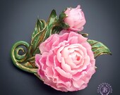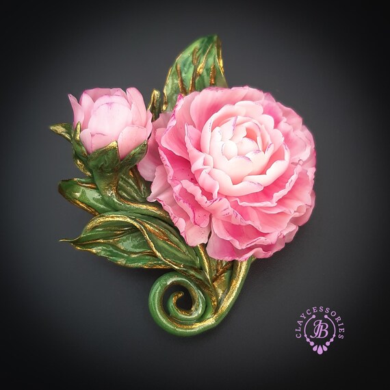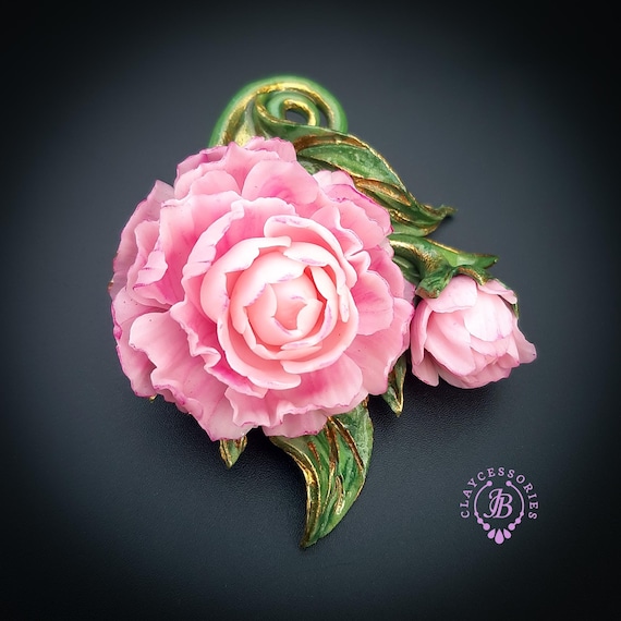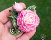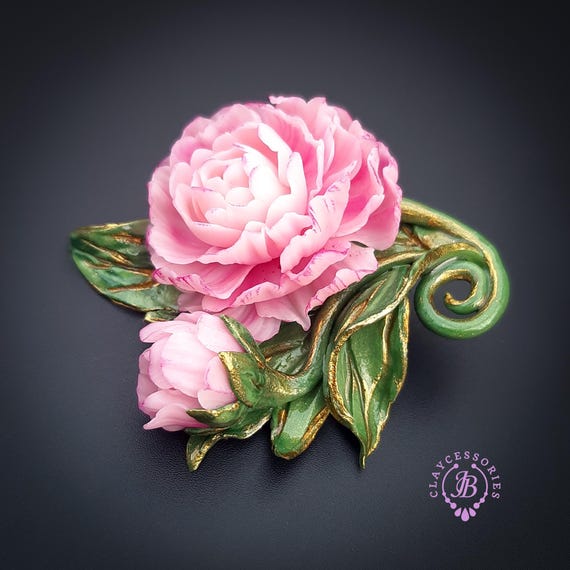 Peony statement brooch in Art Nouveau style will complement your outfit and you will not go unnoticed! Preferably fixed on thick fabric. All details sculpted and carved from high-quality colourful polymer clay, colours do not wash out and do not fade in the sun. Single copy,100% Handmade OOAK brooch. All items are shipped from my home within 1-3 business days after payment confirmation. Please, contact me with any questions. I make some custom orders. If you would like some items to be custom made or created for you in a special way, feel free to send an Etsy conversation with your requirements, and we can discuss them.