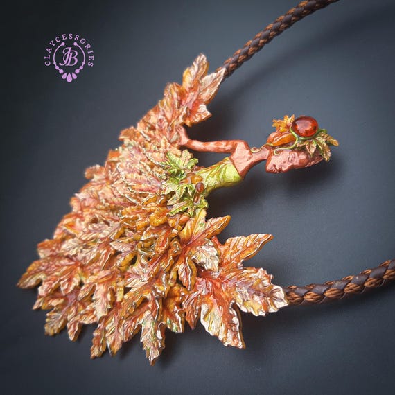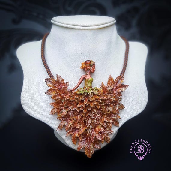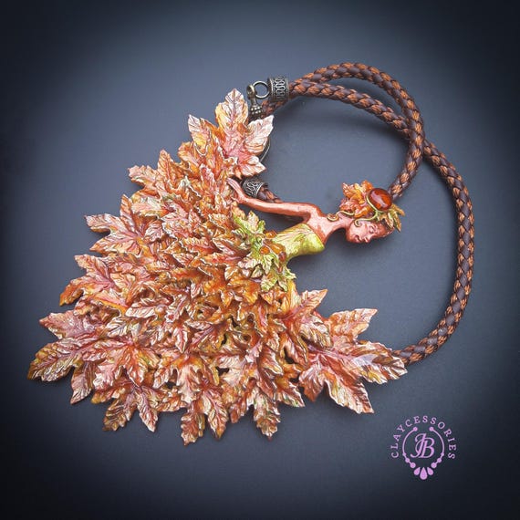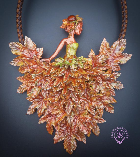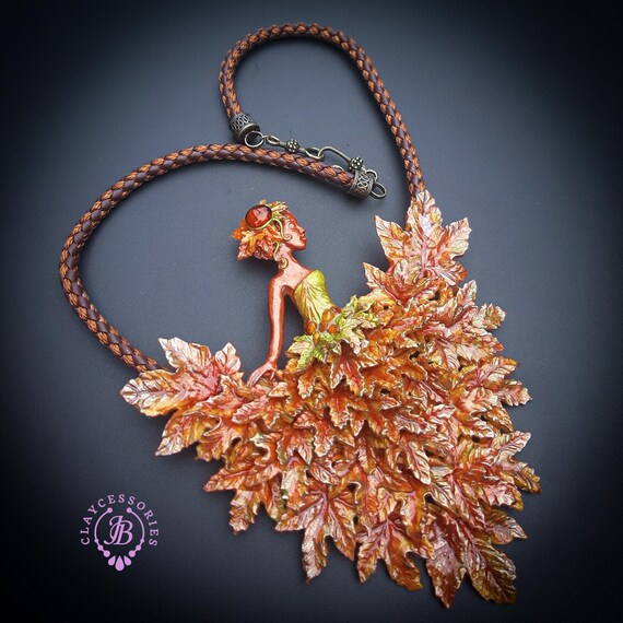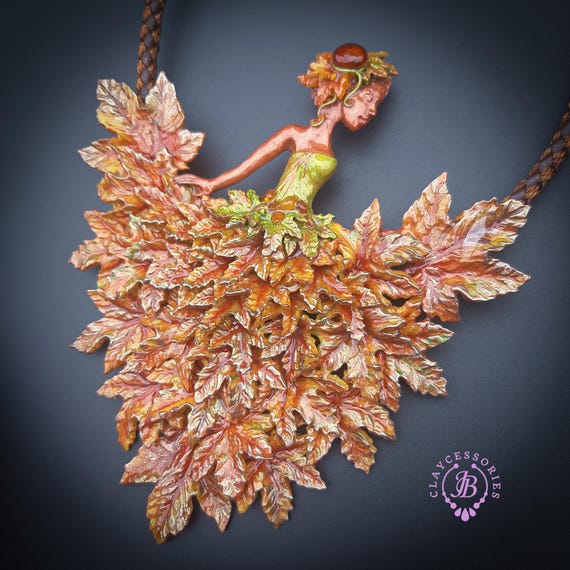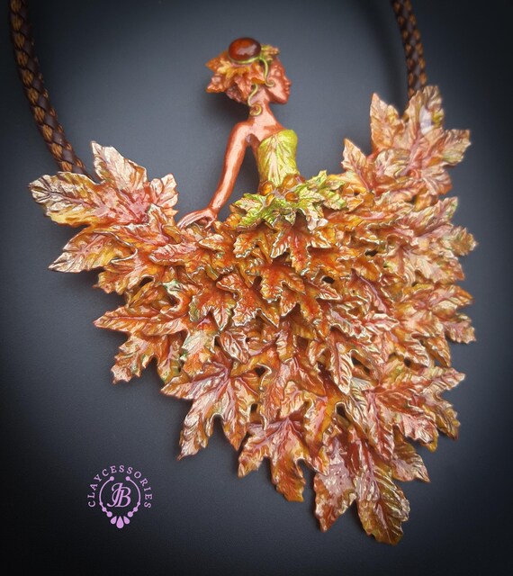Embrace the magic of nature with this stunning Leafy Fairy Pendant. Handcrafted with intricate details, this unique piece features a graceful fairy adorned in a vibrant dress made of autumn leaves. The warm hues of orange, gold, and green capture the essence of fall, making it a perfect accessory for any season. All items are shipped from my home within 1-3 business days after payment confirmation. I make some custom orders. If you would like some items to be custom made or created for you in a special way, feel free to send an Etsy conversation with your requirements, and we can discuss them.