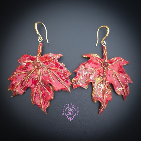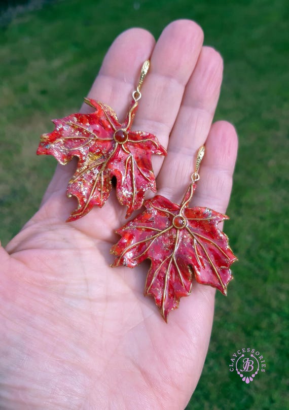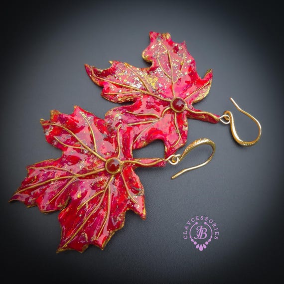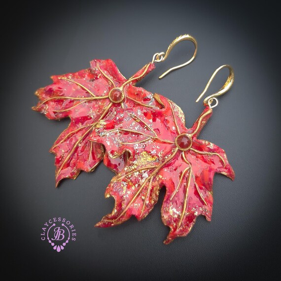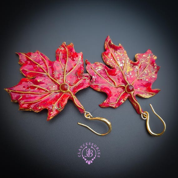 Elevate your style with these stunning handmade red maple leaf earrings. Crafted with intricate detail, each earring features a vibrant red hue accented with shimmering gold highlights, capturing the essence of autumn. Made of high-quality polymer clay for durability and lightweight wear. Single copy, 100% Handmade OOAK earrings. All items are shipped from my home within 1-3 business days after payment confirmation. I make some custom orders. If you would like some items to be custom made or created for you in a special way, feel free to send an Etsy conversation with your requirements, and we can discuss them.