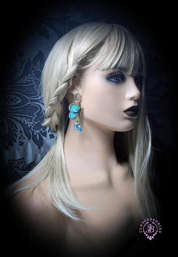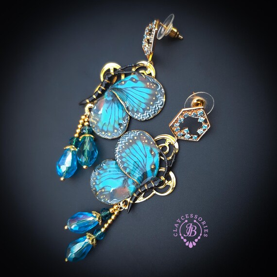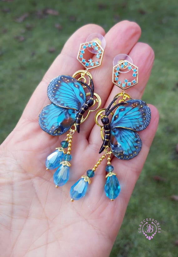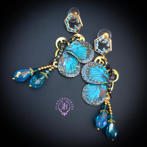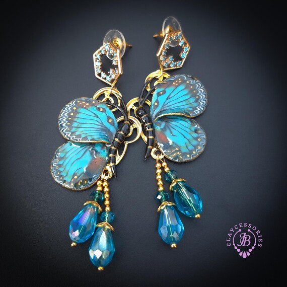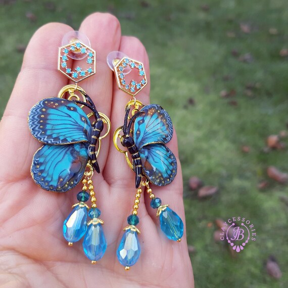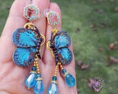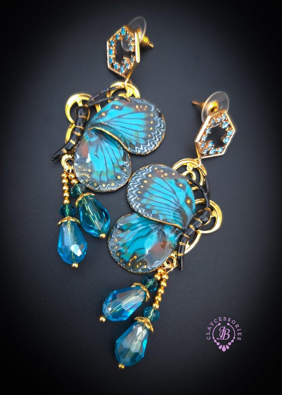 Butterfly earrings in Art Nouveau style, all details are sculpted and carved from high-quality colourful polymer clay, colours do not wash out and do not fade in the sun. Single copy,100% Handmade OOAK earrings. All items are shipped from my home within 1-3 business days after payment confirmation. Please, contact me with any questions. I make some custom orders. If you would like some items to be custom made or created for you in a special way, feel free to send an Etsy conversation with your requirements, and we can discuss them.
