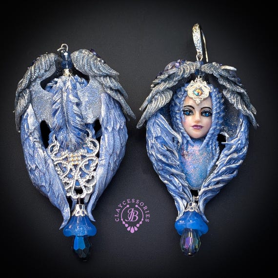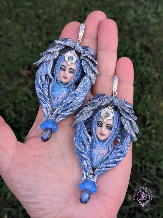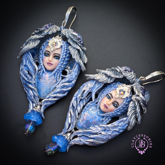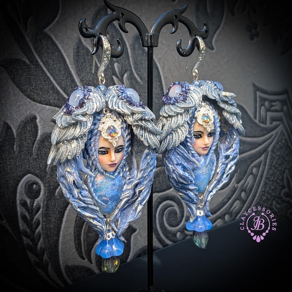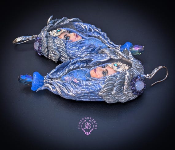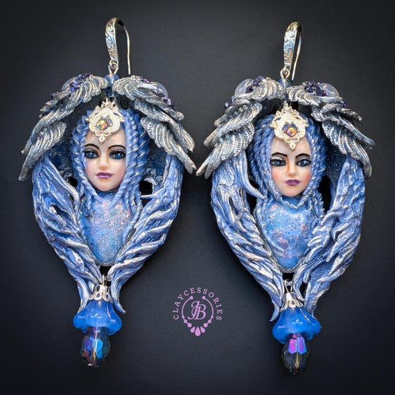 Elevate your accessory game with these stunning Blue Angels Earrings, inspired by celestial beauty and crafted for the modern goddess. These earrings feature intricate designs, adorned with shimmering beads and exquisite details, capturing the enchanting essence of angelic figures. Enhance your jewelry collection with these enchanting Blue Angels Earrings—a true statement piece that reflects grace and sophistication Single copy,100% Handmade OOAK earrings. All items are shipped from my home within 1-3 business days after payment confirmation. Please, contact me with any questions. I make some custom orders. If you would like some items to be custom made or created for you in a special way, feel free to send an Etsy conversation with your requirements, and we can discuss them.