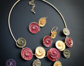 polymer clay, Swarovski crystals, metal choker and earrings base, enamel, UV resin