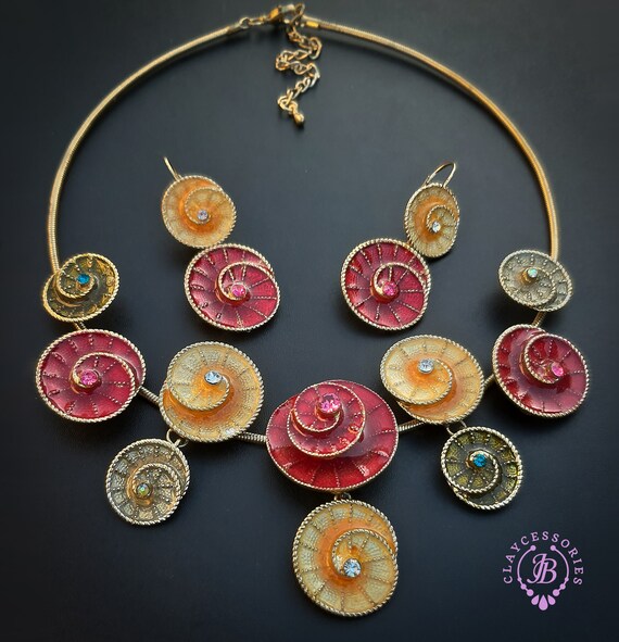 Colourful swirl necklace earrings jewellery set
